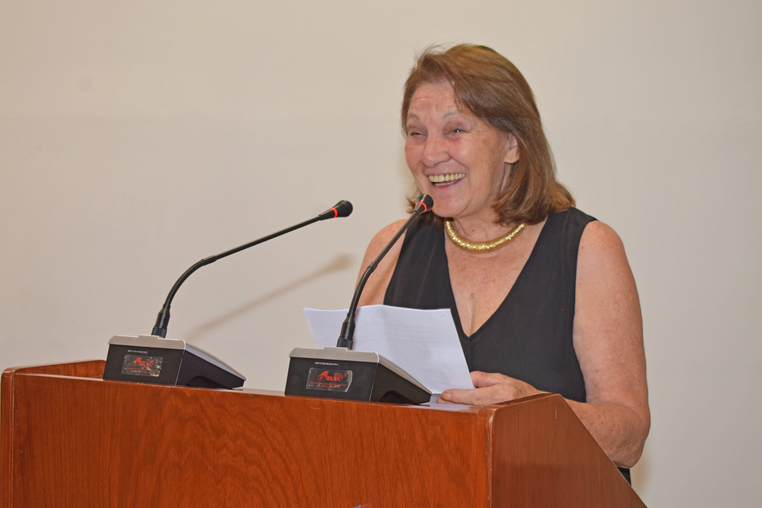 También, y en nombre de los profesionales destacados, habló la contadora María Nella Prosdocimo de Cheli, quien cumplió 50 años de ejercicio de la profesión, recordó los inicios de su carrera en Libertador General San Martín, las tareas de gestión para lograr la Delegación del CPCEJ en esa localidad y alentó a los más jóvenes a desarrollar las profesiones con responsabilidad, ética y compromiso.