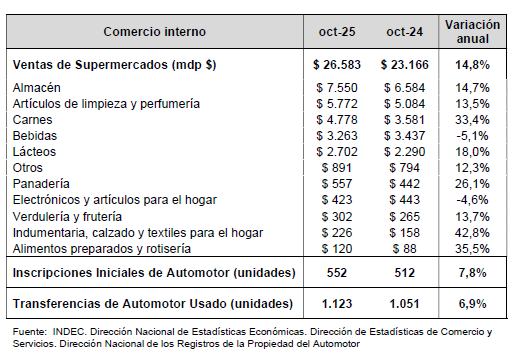 En el comercio interno a mes de octubre del 2025, según la encuesta de supermercados